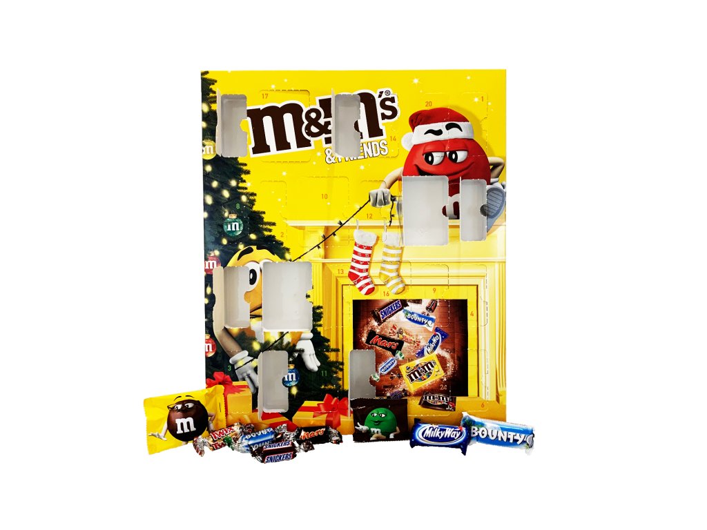 Itt kezdődik a karácsonyi hangulat. Az m & m's & Friends adventi naptárral a név mindent elmond. Itt megvásárolhatja a márka kedvenc klasszikusait mini formátumban. Így rejtőznek 24 ajtó mögé apró finomságok, melyeket minden nap elfogyasztanak a szerelem ünnepéig.