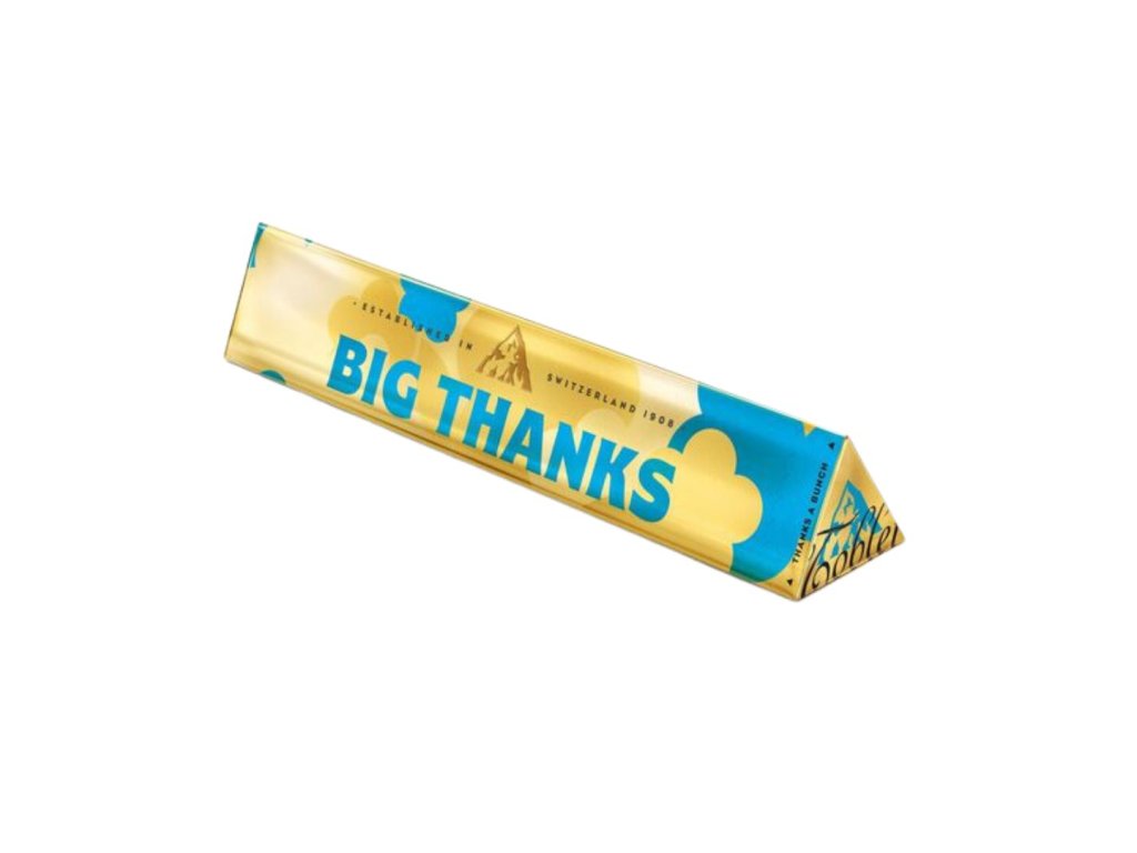 A híres háromszög alakú svájci tejcsokoládé mézzel és mandulanugáttal mostantól személyre szabott csomagolásokban is kapható, olyan érzelmes üzeneteket hordozva, mint például: „Szeretlek”, „Hiányzol”, „Boldog születésnapot” és „Gratulálok”. Nagyszerű ajándék útközben. Svájcban készült.